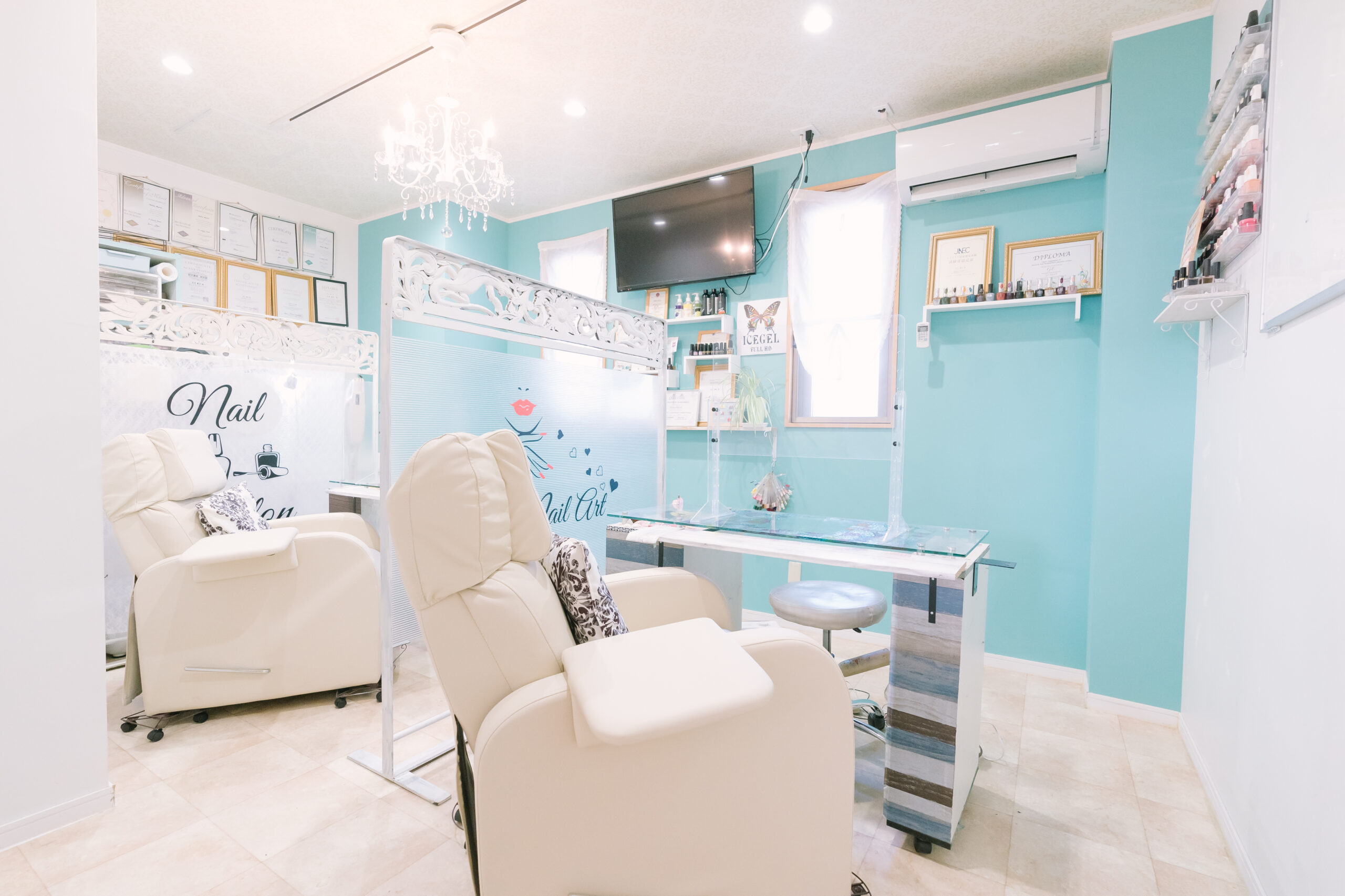・最新のネイルテーブルとチェアを完備し、実技の際には各自のスペースで快適に作業ができます。