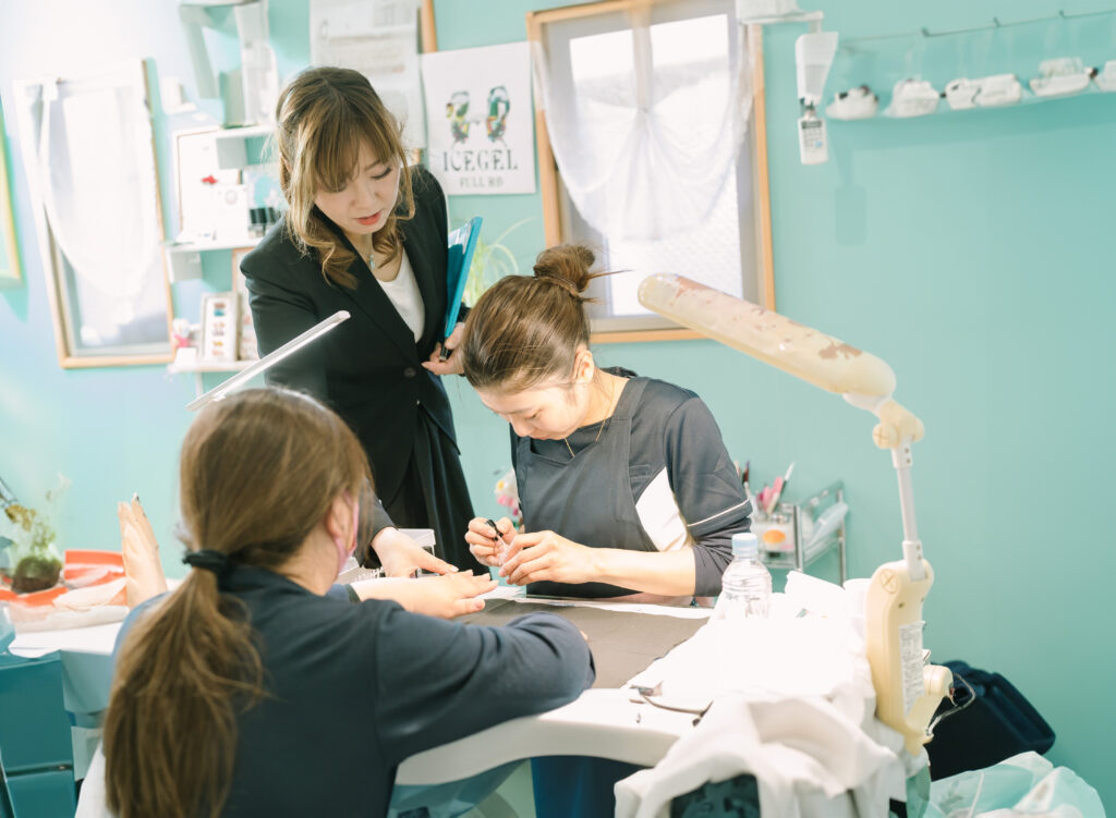・ネイルケア、リペア、チップ&ラップ、アートに関する技術及び知識の再学習および実技練習